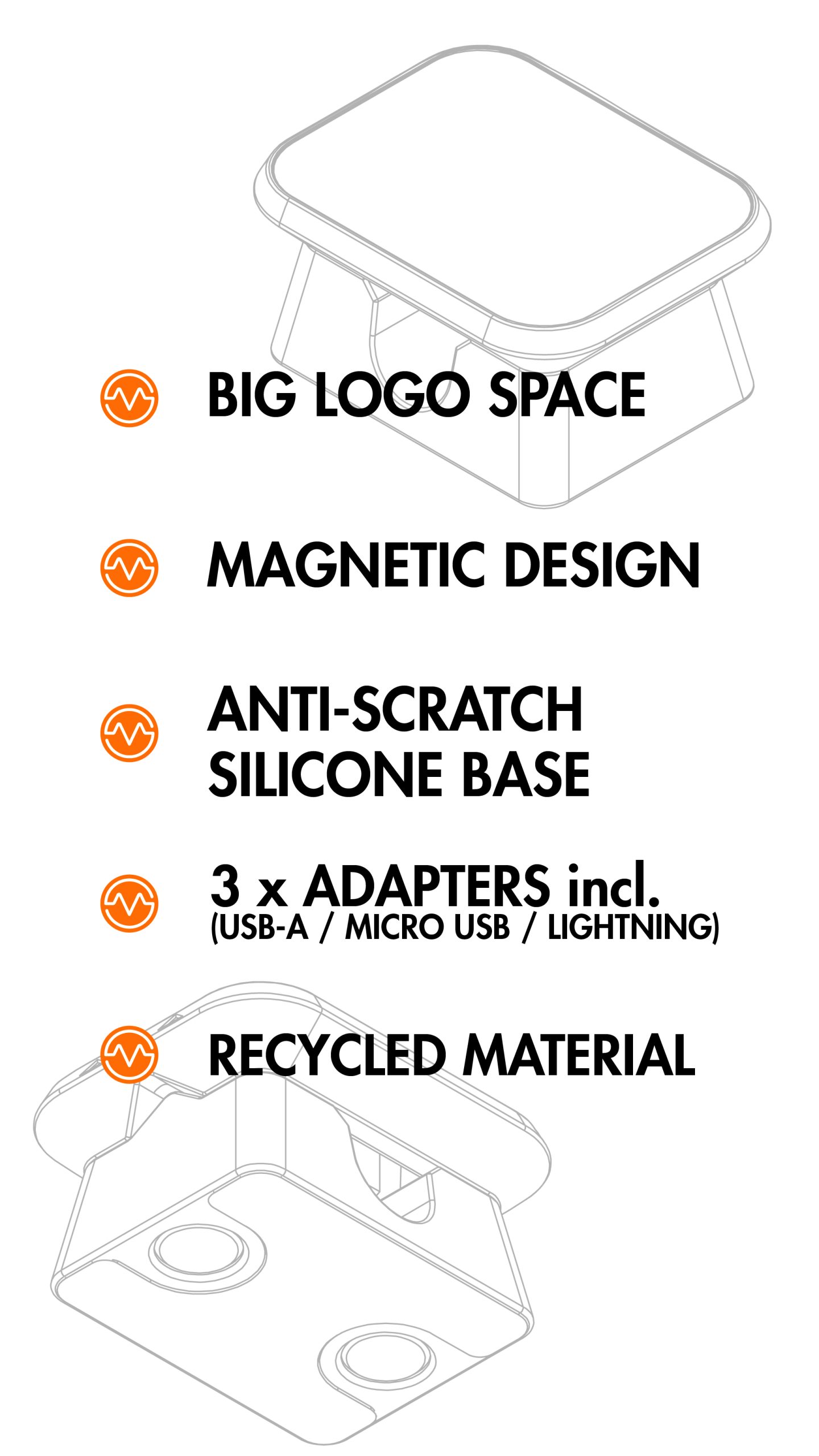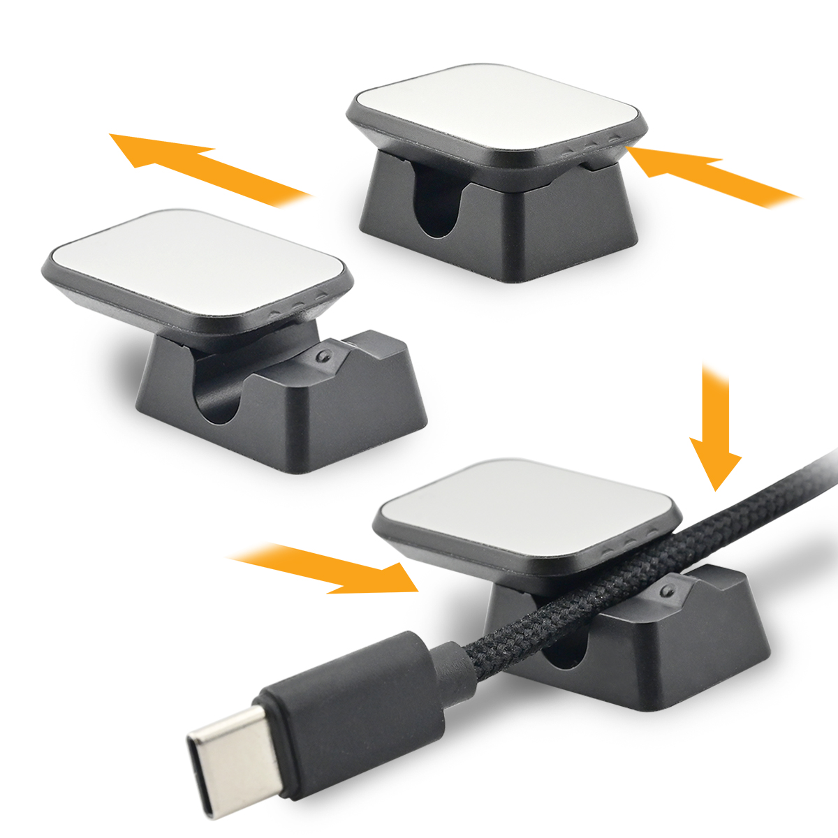 Another product in the Recharge series is this cable holder. The unique sliding cover design provides a satisfying tactile experience when storing cables. The magnetic base allows the product to attach to various metal surfaces, while the silicone pad at the bottom helps prevent scratching the attached surfaces during use. This design helps you organize cables from all angles. With different base designs available, it adapts to various usage scenarios, meeting the diverse needs of our customers.