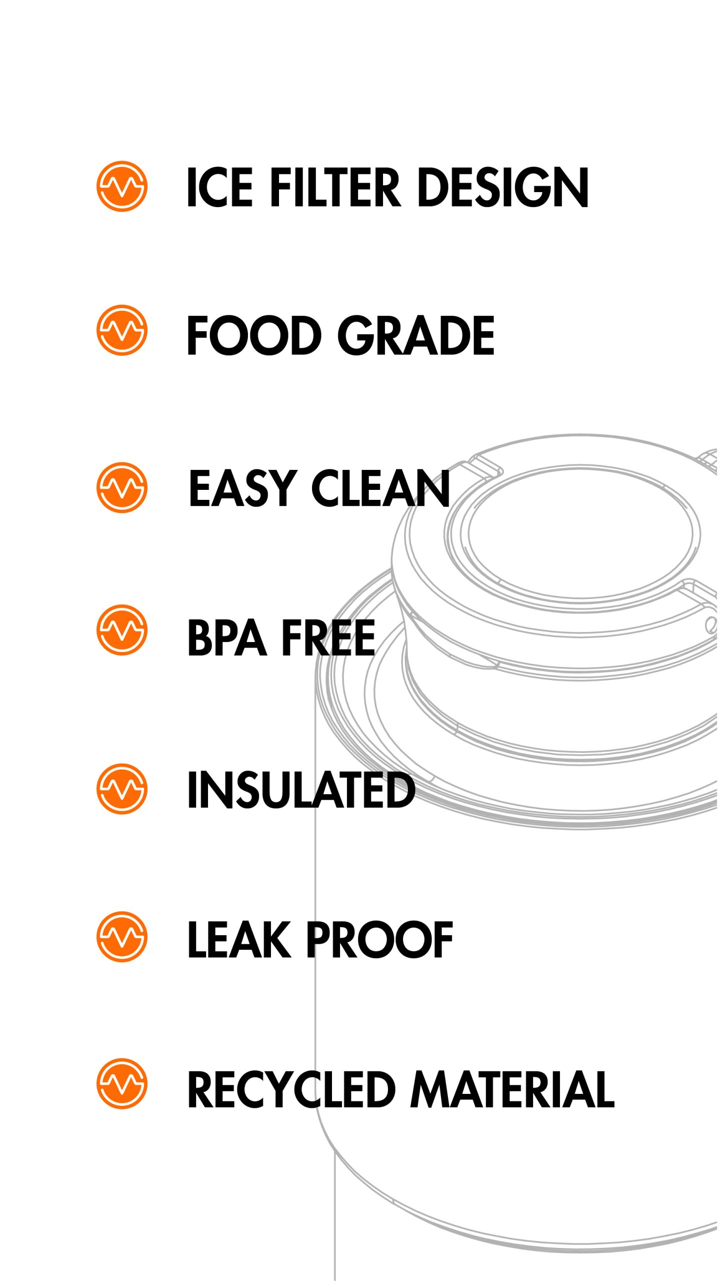 Our expertly designed lids are equipped with two silicone seals for superior security and leak-proof performance, ensuring a tight closure that keeps your drinks safe and contained. The Dual seals design offer enhanced protection, preventing leaks and spills, even during movement or accidental knocks.